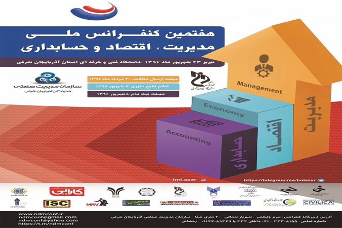هفتمین کنفرانس ملی مدیریت، اقتصاد و حسابداری در تاریخ ۲۳ شهریور ۱۳۹۶ توسط سازمان مدیریت صنعتی تبریز برگزار می شود.