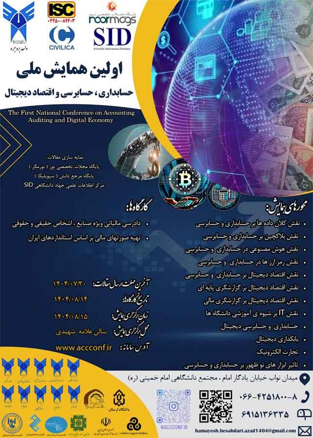 <div>اولین همایش ملی حسابداری، حسابرسی و اقتصاد دیجیتال در تاریخ 15 آبان در بروجرد برگزار خواهد شد.</div> <div>تلفن دبیرخانه: 0664251800</div> <div>مرکز اطلاع ررسانی اینترنتی: <a href="https://accconf.ir/">https://accconf.ir</a></div> <div></div>
